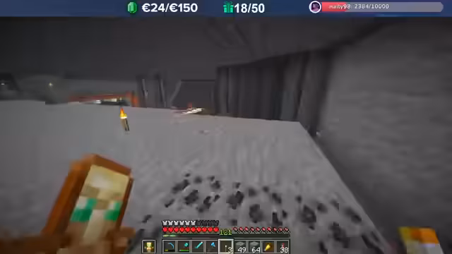 02:12:20Eine Führung durch den Community-Server zeigt die Vielfalt der Spielinhalte. Es gibt eine Adventure-Area mit handelbaren NPCs, eine Mine mit Wachen und Quests, um das Tor zu öffnen, und einen Magierturm für Upgrades. Das Dungeon besteht aus mehreren Ebenen mit zunehmend starken Mobs. Der Streamer fliegt durch die Bereiche und zeigt die von der Community erstellten Strukturen, wie einen massiven Eisspeicher, und erwähnt die Highscores, die die Spieler grinden.