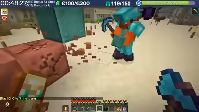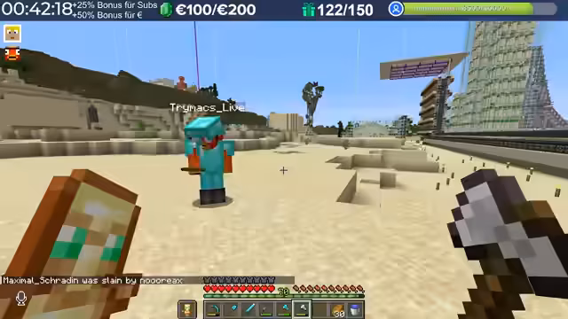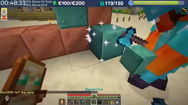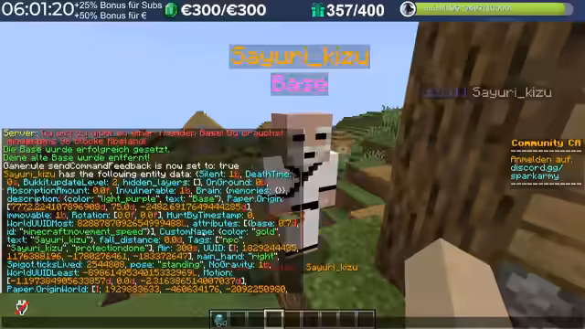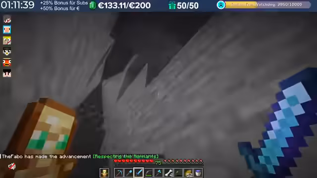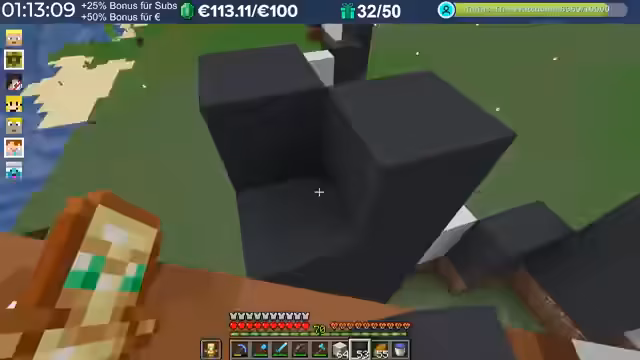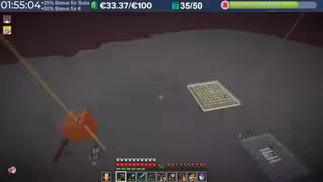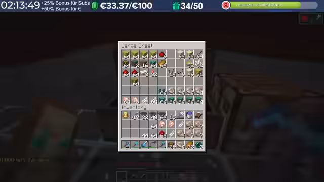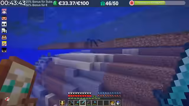 01:29:00Es wird eine Event-Idee vorgestellt, bei der jeden Tag eine Person, die sich hingelegt hat, per Losverfahren vier Subs gewinnt. Dies soll als Anreiz dienen, sich hinzulegen und die Möglichkeit zu haben, Subs zu gewinnen, ohne dass der Streamer selbst Ausgaben hat. Die Eröffnung um 18 Uhr steht bevor, und es bleiben nur 40 Minuten, um ein Sniffer-Ei zu finden, was als nahezu unmöglich angesehen wird. Die Gruppe bricht zur Suche nach Sniffer-Eiern im Warm Ocean auf. Sie benötigen Tridents, um sich schnell unter Wasser fortzubewegen. Es wird diskutiert, wie man die Repair-Kosten eines Items zurücksetzen kann, und ein Command dafür wird im Chat geteilt. Der Streamer landet in einem Loch und muss sich wieder hochbauen, während die anderen bereits im Wasser sind und nach Unterwasserruinen suchen, in denen Sniffer-Eier zu finden sein sollen. Die Suche nach Kies und Diamanten wird fortgesetzt, da diese Ressourcen dringend benötigt werden und Diamanten als Währung immer wichtiger werden.