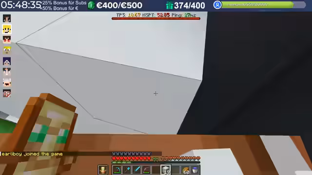 04:51:14Es stellt sich heraus, dass die Spielerin, die sich dem Stream angeschlossen hat, die Frau des Streamers ist, die bereits seit Craft Attack 6 dabei ist, aber aufgrund der Kinder eine Pause vom Streaming eingelegt hatte. Die Kinder sind nun vier und eins Jahre alt, was die Möglichkeit eines Wiedereinstiegs ins Streaming eröffnet. Währenddessen treten Serverprobleme auf, die auf eine große Anzahl von Booten zurückgeführt werden, die von Hugo für Charity-Zwecke platziert wurden. Es wird diskutiert, ob diese Aktion, obwohl für einen guten Zweck, die Spielerfahrung aller beeinträchtigt und ob es nicht bessere Charity-Ziele gäbe, die den Server nicht belasten.