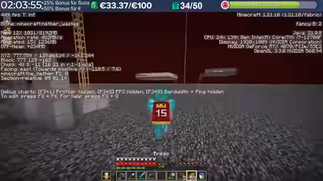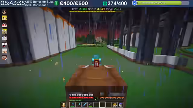 03:30:53Ein Spieler fragt nach Purple Froglights und bietet im Gegenzug Diamanten an, was der Streamer als fairen Preis akzeptiert. Es wird über die 'Bootregel' diskutiert, die besagt, dass der Server nicht zum Laggen gebracht werden soll. Ein Spieler plant, 2900 Boote zu platzieren, und der Streamer gibt ihm die TPS-Anzeige, um die Serverleistung im Auge zu behalten. Die Umfrage zur Minecraft-Version zeigt, dass 86% der Community Java spielen, was die Entscheidung beeinflusst, ob Bedrock-Support angeboten werden soll. Es wird Beton hergestellt, und der Streamer plant, den Nether erneut zu besuchen, um Kies zu sammeln. Die Community unterstützt den Stream weiterhin stark durch Sub-Gifts und Spenden, was den Streamer motiviert, das Format fortzusetzen, auch wenn es lange Live-Zeiten bedeutet.
