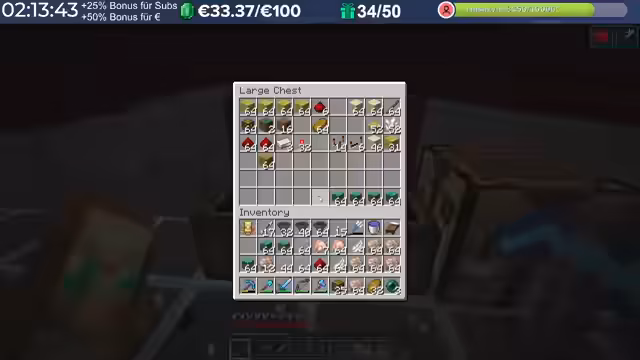 20:12:27Die Streamer sind intensiv mit der Feinjustierung einer komplexen Farm beschäftigt, die darauf ausgelegt ist, kontinuierlich Blöcke zu produzieren. Dabei wird darauf geachtet, dass die Offhand immer gleich viele Items enthält und der Abbau, das Platzieren sowie das Dispensieren perfekt synchronisiert sind. Es wird diskutiert, wohin die gedroppten Blöcke gelangen und wie das Lagersystem optimiert werden kann. Ein zentrales Thema ist die geplante Handelsstrategie mit den Farmerträgen. Es wurde bereits ein Deal mit Fabo für die gesamte Produktion der Nacht und des Tages geschlossen. Die Idee ist, die produzierten Materialien im eigenen Shop gegen Diamanten und andere Deals zu verkaufen, um die Exklusivität der Farm zu wahren und nicht jedem den Zugang zu ermöglichen. Die Einzigartigkeit der Konstruktion wird betont, da eine solche Farm nicht einfach im Creative Mode oder im Singleplayer nachgebaut werden kann, wo man gezielt nur die benötigten Blöcke abbaut.