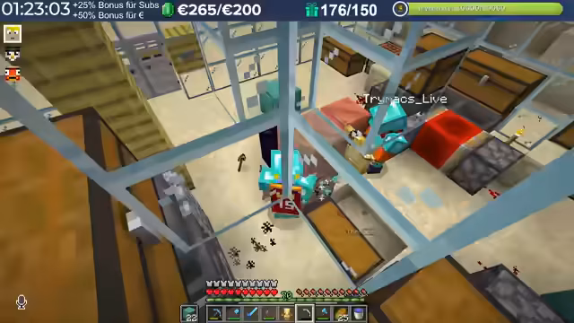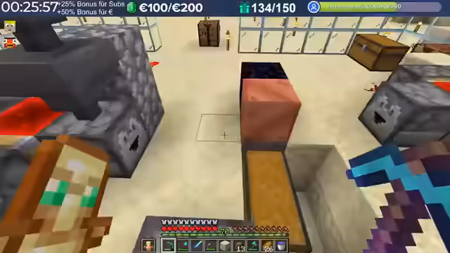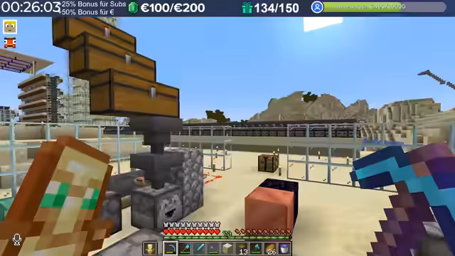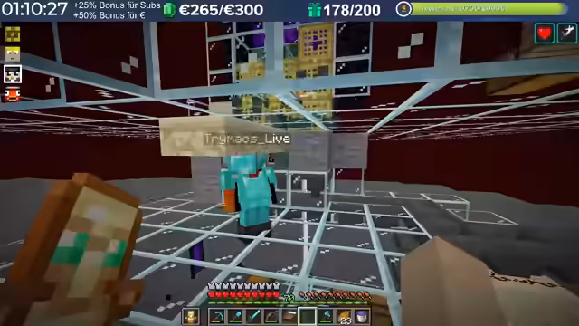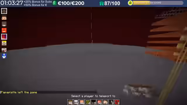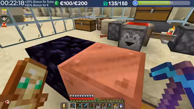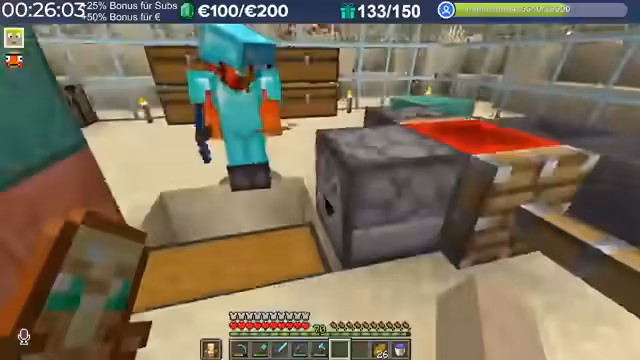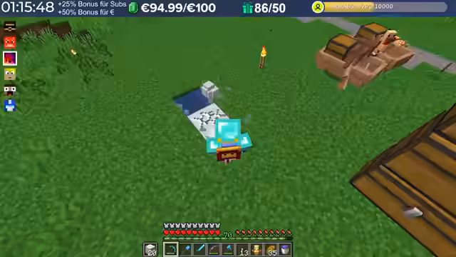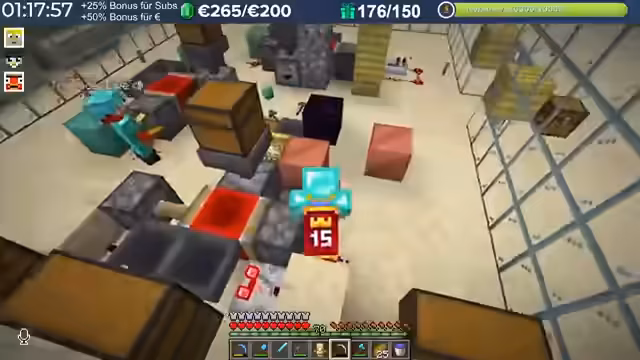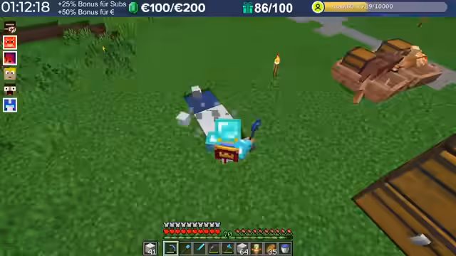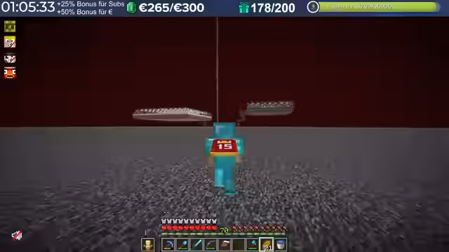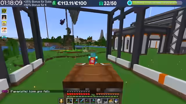 18:00:08Es wird ein neues Feature vorgestellt: ein Dia-Konto-System, das es Spielern ermöglicht, Diamanten einzuspeichern und ihren Dia-Score über dem Kopf zu tragen. Dieses System könnte über Command-Blocks oder ein Menü implementiert werden, um Diebstahl von AFK-Spielern zu verhindern. Das Ziel ist es, einen Anreiz für Spieler zu schaffen, möglichst viele Diamanten zu sammeln. Anschließend wird ein Problem mit einem Chunkloader und Nether-Portal besprochen. Mehrere Spieler haben das Portal beschädigt oder falsch genutzt, was zu einer Unterbrechung der Wollproduktion führte. Es wird untersucht, wer die Blöcke platziert oder das Feuer gelöscht hat, das für den Chunkloader notwendig ist. Die Situation wird als Missverständnis und nicht als Absicht eingestuft, aber die Auswirkungen auf die Farmproduktion sind spürbar.