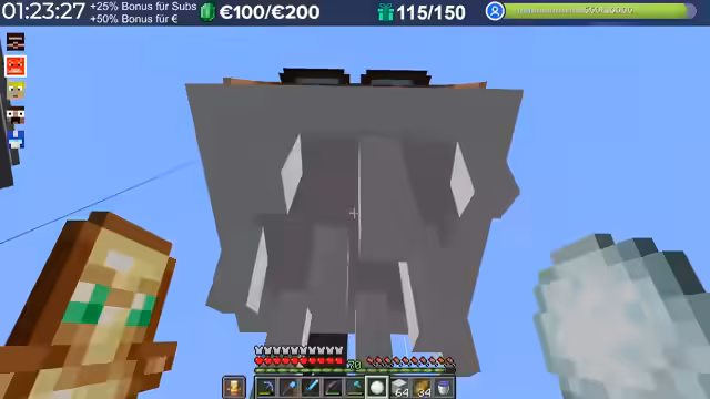 22:54:58Der Streamer plant, weitere Grundrisse für Bauprojekte zu realisieren und benötigt dafür neuen Beton. Insbesondere fehlt es an Kies, weshalb eine Tour zur Kiesgewinnung in Höhlen in Betracht gezogen wird, um die Landschaft in der Nähe der Basis nicht zu zerstören. Zudem wird über die Beschaffung von Froglights nachgedacht. Es wird auch über die Entbannung von Streamern gesprochen, die bis zum Mittag des aktuellen Tages erfolgt sein sollte, es sei denn, es sind neue Fälle hinzugekommen. Die Diskussion dreht sich auch um die Philosophie des Bauens in Craft Attack, wobei betont wird, dass die Zerstörung von Bauten anderer, die viel Zeit investiert haben, nicht dem eigenen Spielstil entspricht, es sei denn, man wird provoziert. Persönliche Fähigkeiten im PvP werden als gering eingeschätzt, während technische Bauten bevorzugt werden. Als bisher krassestes Bauprojekt wird ein A320 Neo genannt, und es gibt Pläne, einen B2-Bomber zu bauen, der in Minecraft mit Create-Modifikationen sogar fliegen könnte.