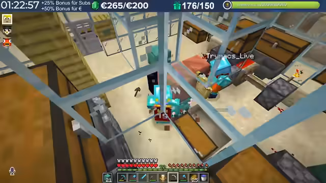 21:05:34Es wird über die Relevanz von Hardcore Worlds und Forever Worlds diskutiert, wobei der Fokus auf Gruppenprojekten wie Craft Attack liegt, die als vorteilhafter gegenüber Solo-Projekten angesehen werden. Das Team arbeitet an der Optimierung einer Ghast-Farm, um die Produktion von Ghast-Tränen zu steigern, was für die Herstellung von Kristallen wichtig ist. Eine Loader-Station für Minecarts wurde gebaut, um das Entladen von Items zu verbessern und Stauungen zu vermeiden. Die Froglight-Farm soll ebenfalls wieder in Produktion gehen, und es wird überlegt, die Farmen zu vergrößern und streamfreundlicher zu gestalten, indem der Grind reduziert und mehr Content für Gelegenheitsspieler geboten wird. Währenddessen wird die Effizienz der Farmen überprüft und Anpassungen vorgenommen, um einen reibungslosen Ablauf zu gewährleisten und die Produktion zu maximieren.