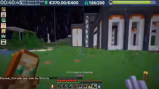 23:11:14Es erfolgen Ankündigungen zu Sub-Geschenken und Hypetrain-Events, die den Abend retten sollen. Der Streamer plant den restlichen Tagesablauf: Geplant sind acht Stunden, mit einem Stopp um 23:30 Uhr. Zukunftstermine wie Arztbesuche werden erwähnt, die Streamzeiten jedoch nicht reduziert, da längere Tage nötig sein könnten. Zudem wird ein Minigame zum Gewinnen von Minecraft-Capes vorbereitet, der in der Bedrock-Version eingelöst werden kann.