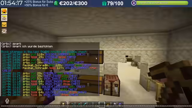 02:05:25Ein Vorfall im Inventar führt zu einer aufgebrachten Diskussion. Ein Spieler stellt fest, dass Goldkarotten fehlen und normale Karotten ersetzt wurden. Der Vorwurf des Diebstahls wird laut, wobei ein Spieler unterstellt wird, die wertvollen Ressourcen entfernt und weniger wertvolle hinzugefügt zu haben, um es wie einen Tausch aussehen zu lassen. Die Situation eskaliert, da der Betroffene sich bestohlen und verarscht fühlt, was zu einer hitzigen Auseinandersetzung unter den Spielern führt.