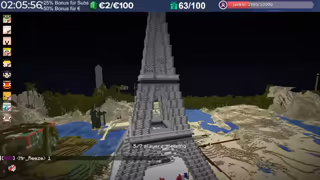 01:20:49Während des Streams treten technische Herausforderungen auf, die den Bauprozess behindern. Der Streamer stellt fest, dass ein Layer-Fehler im Bausystem zu einer falschen Höhe beim Bautermin führt, was den gesamten Bauabschnitt unbrauchbar macht. Als Workaround wird der gesamte Bereich abgebaut und neu aufgebaut. Gleichzeitig wird das ambitionierte Vorhaben erwähnt, das Kaiserslautern-Stadion nachzubauen, jedoch gibt es bereits Gegenstimmen, die dies verhindern wollen. Auch ein Angriff auf den Streamer, 'Fuchsel', wird thematisiert, was zu einem PvP-Gefecht führt, bei dem der Streamer sich zurückzieht und seine Items schützt.