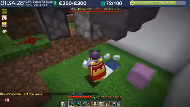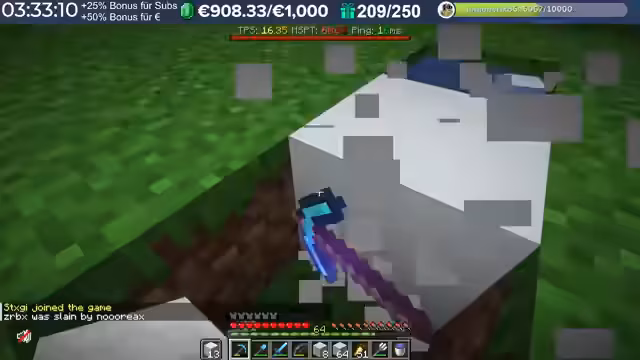 24:47:27Während der Stream die Zeitbosse und die Spenden weitergeht, gibt es Hinweise auf Performance-Probleme auf dem Server. Die Mob-KI war vorübergehend deaktiviert, was zu ungewöhnlichen Ereignissen wie dem Tod von Amadillos und dem Stillstand von Villagern führte. Trotz dieser technischen Hürden feiert die Community große Erfolge bei den Bossen-Kämpfen und spendet massiv, was zu einem kontinuierlichen Ansteigen des Timers führt. Der Streamer zeigt sich dankbar für die Unterstützung und betont, dass dies freiwilliges Spaßgeld sei.