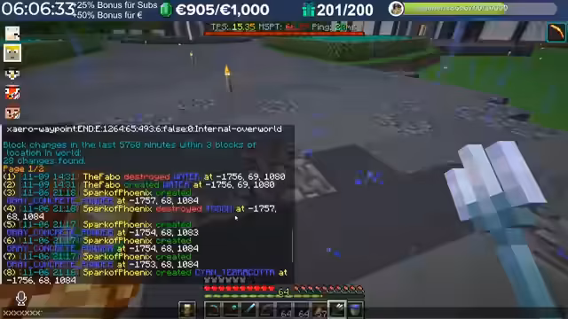 04:48:48Der Stream beginnt mit einer intensiven Auktionsszene, in der Diamanten und andere seltene Items wie Stacks von Fabo und Trimax geboten werden. Die Stimmung ist angespannt, als es zu einem gewaltigen Diebstahl kommt, bei dem einem Spieler massenhaft Items entwendet werden. Bei der anschließenden Untersuchung des Inventars stellt sich heraus, dass der Dieb auch mit einem Admin-Block manipuliert hat, was die Fairness des Events massiv infrage stellt und zu Frustration unter den Teilnehmern führt.