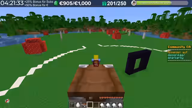 21:58:26Auf die Frage nach der geplanten Aufenthaltsdauer im Craft Deck antwortet der Streamer, dass er dies als Aktivitätskonzept versteht und seine Bauten kontinuierlich erweitern wird. Er plant, seine Technik-Basis mit Farmen auszustatten und sie immer weiter zu vergrößern, um sich ausreichend mit Beschäftigung zu versorgen. Minecraft bietet hierfür keine festen Grenzen und der Streamer sieht keine Gefahr, keine Aufgaben mehr zu haben.