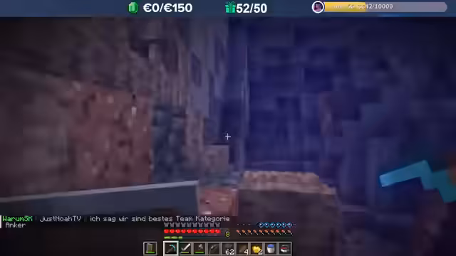 00:52:16Die Spieler erkunden eine Mine und diskutieren über Ressourcenmanagement. Es wird entschieden, unnötige Gegenstände wie Kürbisse wegzulassen, um Platz zu sparen. Einer der Spieler geht kurz auf die Toilette, während der andere weitergräbt und nach Eisen sucht. Es wird überlegt, wie viel Eisen in der tiefsten Ebene zu finden ist und ob es ausreicht, um Werkzeuge herzustellen. Deer-Equipment wird als bessere Alternative zu Eisenausrüstung in Betracht gezogen, da es höhere Schadenswerte bietet. Gebratene Kartoffeln werden als Nahrung gelagert, wobei die Entscheidung, Knochen zu sammeln, vertagt wird. Das Team einigt sich darauf, beim Graben zu schleichen und Smaragde wegzuwerfen, da ein Handel nicht geplant ist. Eisen wird gefunden, und es wird überlegt, ob man sich parallel herbauen oder Stripmine betreiben soll. Die Spieler einigen sich darauf, zusammenzubleiben und Diamanten hauptsächlich für Ausrüstung zu verwenden. Sie arbeiten sich langsam in Richtung Spawn vor und berücksichtigen dabei die Einschränkungen der Welt. Normalerweise werden Höhlen erkundet, aber dieses Mal wird eine Ausnahme gemacht.