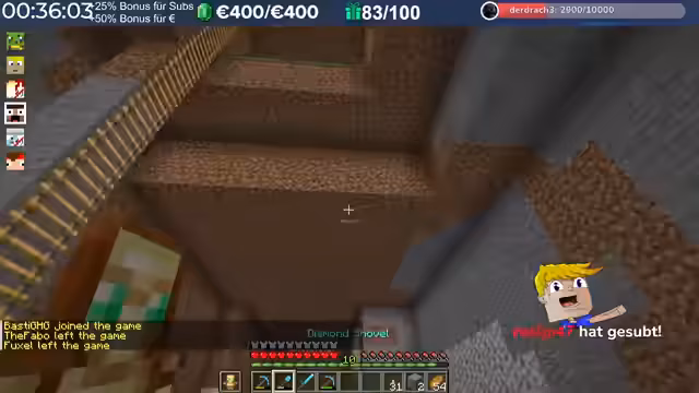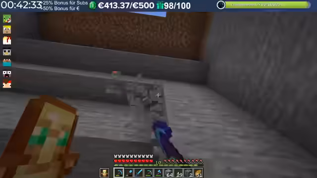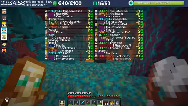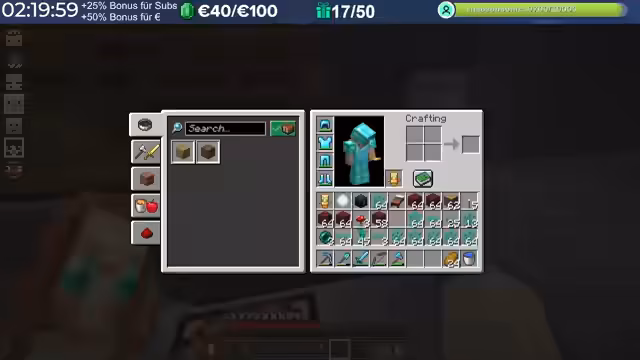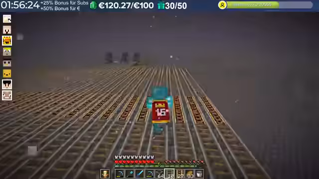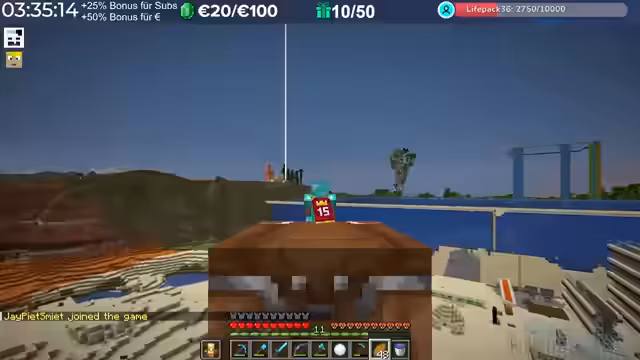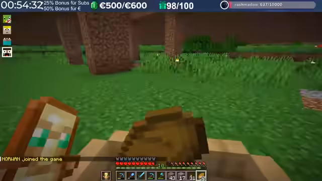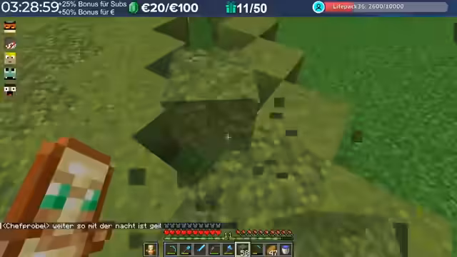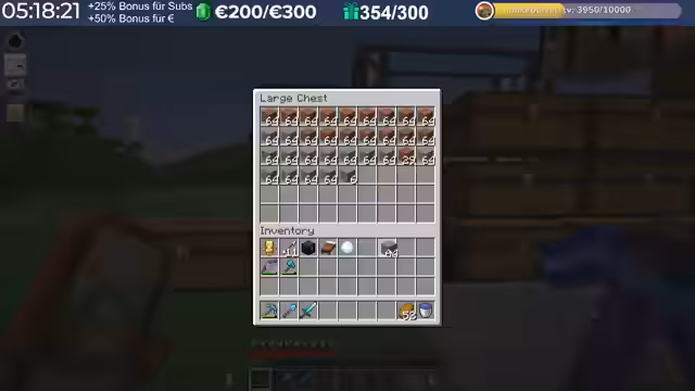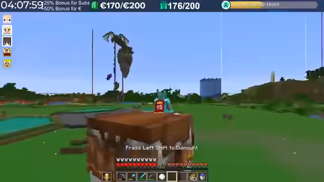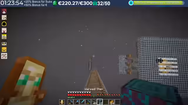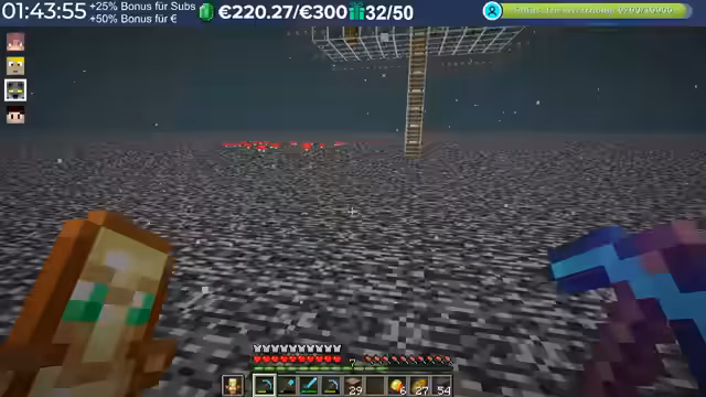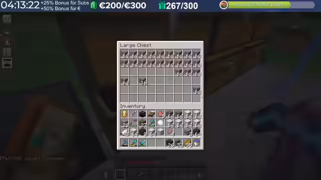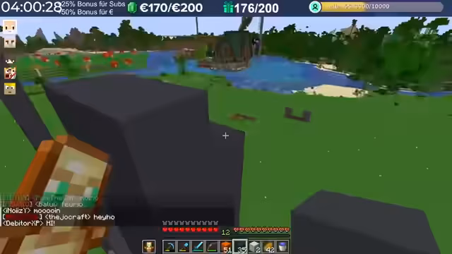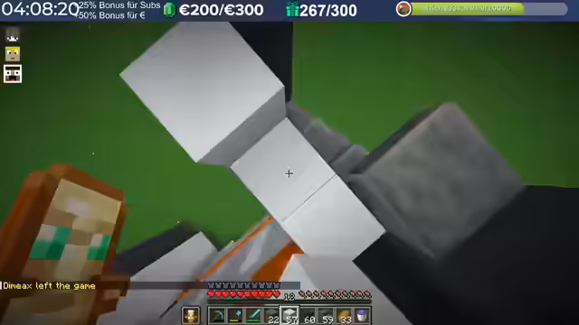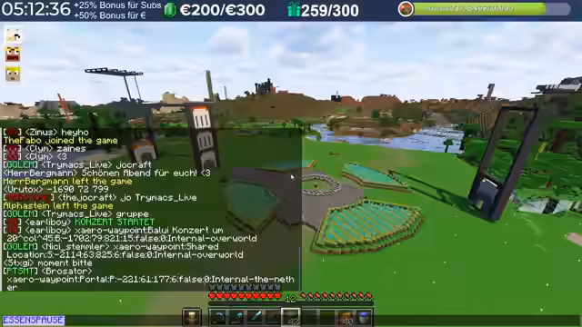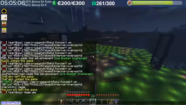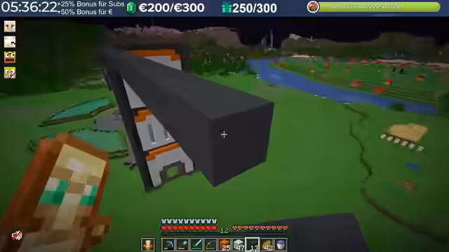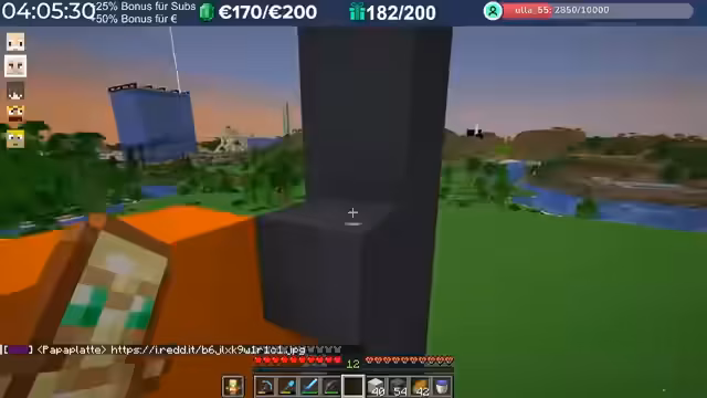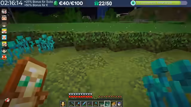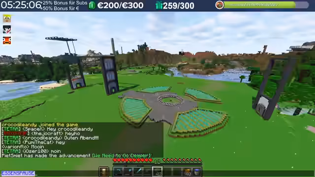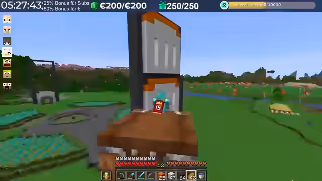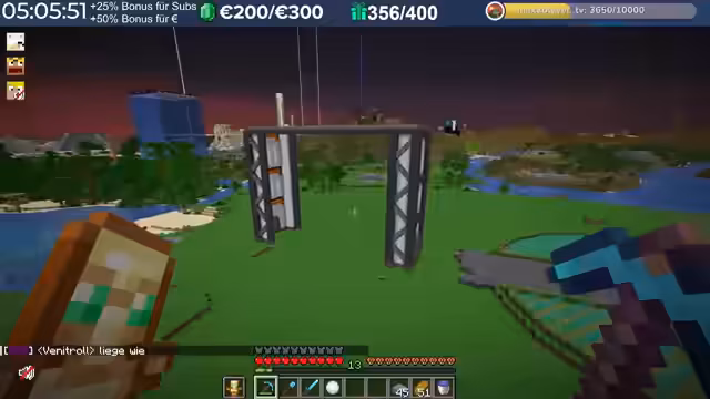 15:25:38Es wird eine Subathon-Aktion angekündigt, bei der für jeden eingehenden Sub ein Diamant an Erdi gespendet wird, der bereits 84 Diamanten erhalten hat. Die Zahl steigt im Laufe der Diskussion auf 98 Diamanten. Ein Spieler bietet an, am nächsten Abend bei einem Frosch-Projekt zu helfen und Tritons zu teilen. Die Diskussion wechselt zu Bauprojekten, insbesondere dem Bau eines Hauptgebäudes mit dem Happy Ghast. Es wird über die Planung von Modulen und die benötigten Materialien wie Farbstoffe, Sand und Kies gesprochen. Der Baufortschritt wird als gut bewertet, und es wird erwähnt, dass das Dach bereits fertig ist und nur noch beleuchtet und die Antenne angebracht werden müssen. Die Effizienz des Happy Ghast beim Bauen wird gelobt, und die Hoffnung auf weitere Fortschritte wird geäußert.
