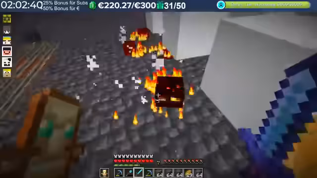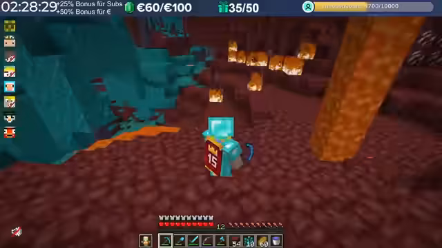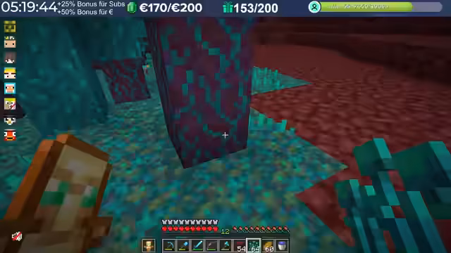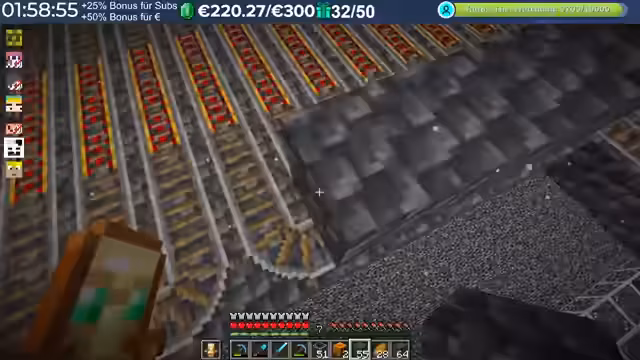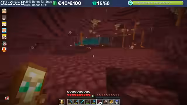 01:48:35Im Nether angekommen, suchen die Streamer nach geeigneten Biomen für ihre Farmen. Sie finden ein Soul Sand Valley und ein Basalt Delta direkt nebeneinander, was ideal für eine Froschfarm und eine Ghastfarm ist. Es wird beschlossen, die Froschfarm im Basalt Delta und die Ghastfarm im Soul Sand Valley zu bauen, um beide gleichzeitig betreiben zu können. Die Nutzung von Mods zur Kartendarstellung im Nether wird diskutiert, wobei betont wird, dass dies als Cheating angesehen wird. Um die Farmen zu bauen, werden weitere Ressourcen benötigt, darunter Kisten, Trichter, Trichter-Minecarts und Powered Rails. Für die Powered Rails wird eine große Menge Gold und Redstone benötigt, was zu einem Engpass führt. Es wird überlegt, eine Goldfarm im Nether zu bauen, um die benötigten Ressourcen zu beschaffen. Ein Event von Hugo um 20 Uhr wird erwähnt, zu dem die Streamer nicht eingeladen sind, was zu einer Diskussion über exklusive Events führt. Die Suche nach Powder Snow für die Froschfarm gestaltet sich schwierig, da er schwer zu finden ist. Die Streamer stellen fest, dass sie über 260 Gold für die Powered Rails benötigen, was eine erhebliche Herausforderung darstellt.