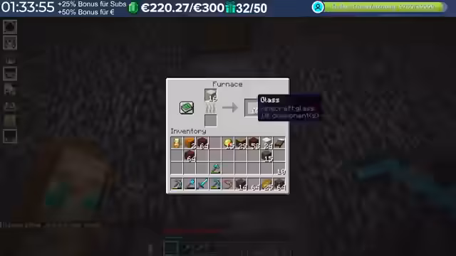 01:17:32Es wird über die Einladungspraxis von Buru zu Events gesprochen, wobei die Intention, nicht den gesamten Server einzuladen, zu Missverständnissen führt. Anschließend planen die Streamer den Bau einer Froschfarm. Hierfür werden verschiedene Materialien benötigt, darunter Eisen für Schienen und Honigblöcke. Die Beschaffung von Eisen stellt eine Herausforderung dar, da ein aufwendiges Lagersystem über drei Stacks Eisenblöcke erfordert. Es wird beschlossen, ein Sammelsystem mit Minecarts zu implementieren, um die große Fläche effizient abzudecken. Ein Portal zur Nether-Decke, das von einem der Streamer gebaut wurde, soll für den Transport genutzt werden. Für die Froschfarm ist zudem Glas notwendig, um das Spawnen unerwünschter Mobs zu verhindern. Es werden etwa 26 Stacks Glas benötigt, wobei Sand als Ressource gesponsert wird, um dieses herzustellen. Die Streamer einigen sich darauf, den Sand in der Wüste zu farmen und die Öfen in der Basis aufzustellen, um das Glas zu schmelzen.