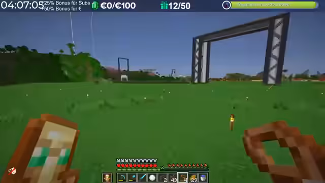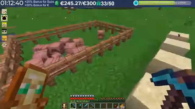 00:25:47Die XP-Farm wird nun fertiggestellt. Ein Zombie wird in ein Boot gesetzt, damit er nicht despawnt und dient als Attraktor für weitere Zombies. Diese Zombies werden dann auf Lagerfeuern platziert, um Silberfische durch den Infektions-Trank zu spawnen. Die Farm ist klein, aber funktional und kann erweitert werden. Der Streamer stellt auch die technische Funktionsweise der Farm und die Notwendigkeit des richtigen Bioms noch einmal klar.