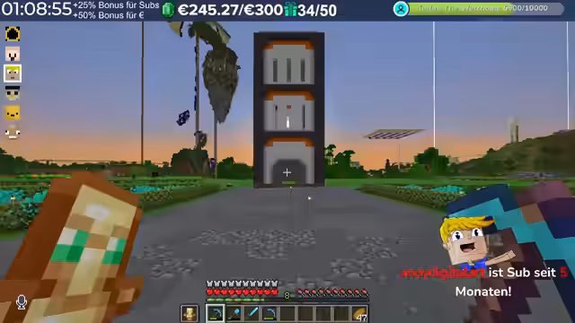 21:21:10Es wurden neue und kreative Bauprojekte im Chat vorgeschlagen. Ein User schlug den Bau einer modernen Raketenbasis mit einem Raketensilo, einem interkontinentalen ballistischen Raketensilo, Fabrikhallen mit Plasma-Geschützen und sogar einem Stargate vor. Gleichzeitig wurde die Idee einer Konzerthalle mit einer DJ-Bühne für Events diskutiert, wobei humorvoll über mögliche Eintrittsgebühren in Form von Subs oder Diamanten gelacht wurde. Der Streamer zeigte sich begeistert von den Ideen und begann sofort mit der Skizzierung.