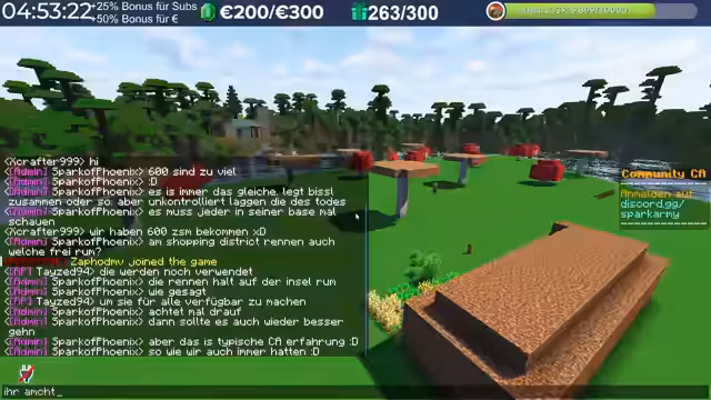 19:45:17Es wird eine ruhige und produktive Atmosphäre angestrebt, bei der der Streamer versucht, technisch versierte Spieler zu lenken, ohne zu streng zu sein. Es gibt einen Vorfall, bei dem ein Spieler nach einer Auseinandersetzung für kurze Zeit vom Server timeout wurde. Der Streamer greift moderierend ein, um die Situation zu deeskalieren und kommuniziert, dass er auf Beschwerden über die Wortwahl von Teilnehmern reagieren wird.