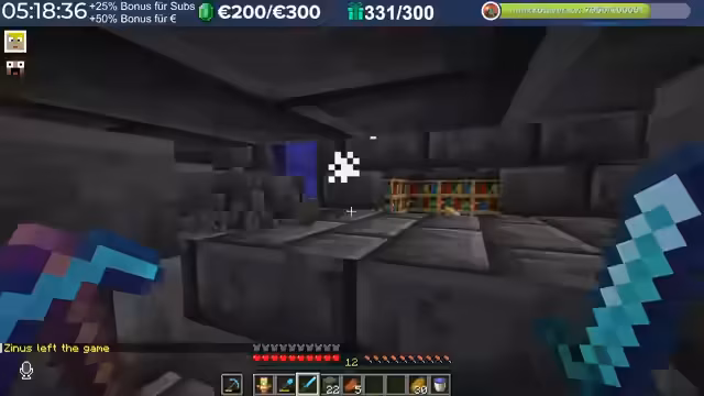 22:28:14Nach der Pause konzentriert sich der Streamer wieder auf die kaputte Kupferfarm. Es gelingt nicht, das Wassersystem zu reparieren, und der Streamer ist frustriert. Parallel dazu plant er eine Abenteuerreise mit anderen Spielern in den Norden der Welt. Währenddessen stirbt eine Mitspielerin namens Mina durch einen Creeper, was eine angespannte Stimmung verursacht.