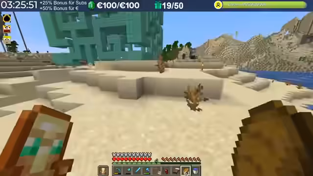 00:11:20Nach dem Tutorial-Aufzeichnungsabschnitt wird der Fokus auf den Multiplayer-Server verlagert. Dort angekommen, wird deutlich, dass es eine lange Liste an zu erledigenden Crafting- und Bauprojekten gibt. Der Streamer beginnt mit dem Material-Sammeln, speziell Sand, und plant den Bau einer XP-Farm für die effiziente Reparatur von Werkzeugen. Dazu wird auch die Zucht von Tieren wie Amadillos für diese Farm ins Auge gefasst.