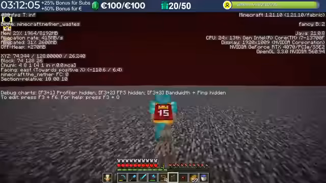 17:50:08Es gibt eine längere Auseinandersetzung über die Verwendung einer NoFog-Modifikation, die im Nether das Durchsehen von Lava ermöglicht. Der Streamer argumentiert, dass dies zwar eine optische Verbesserung darstellt, aber im Grunde genommen eine Art Cheat darstellt, da es einen Vorteil verschafft. Unabhängig davon wird die Server-Einstellung für den Tag-Nacht-Zyklus geändert: Die Anzahl der schlafenden Spieler, um eine Nacht zu überspringen, wird von 15 auf 10 % reduziert, da dies das Gameplay angenehmer macht.