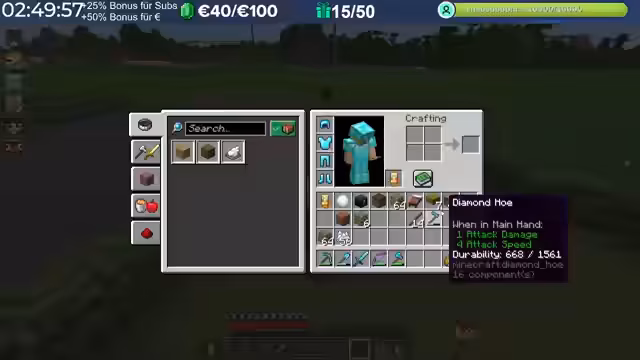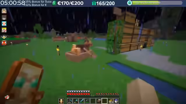 00:13:42Im weiteren Verlauf des Streams konzentriert sich der Streamer auf die Planung von Tiergehegen. Er möchte Armadillos und Schafe züchten, um Wolle und XP zu erhalten. Dabei überlegt er, wie er die Tiere am besten in seine geplante Technikkeller-Basis transportieren kann, möglicherweise durch einen temporären Aufzugsschacht oder einen Eingang im Wasserbereich. Er sucht nach Schafen in der Umgebung, um mit der Zucht zu beginnen, und stellt fest, dass diese nicht so leicht zu finden sind. Er lehnt den Vorschlag ab, Wolle im Deep Dark zu farmen, und betont, dass er eine eigene Wollfarm bauen möchte. Die Armadillos sollen ebenfalls in einem separaten Gehege gezüchtet und später für die XP-Farm genutzt werden. Er plant, bis zu 20 Armadillos zu züchten und benötigt dafür Spinnenaugen, die er in der nächsten Nacht jagen will.