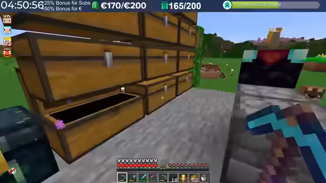 04:18:53Der Streamer plant, überschüssige Materialien für zukünftige Bauprojekte zu lagern, um die Effizienz zu steigern. Währenddessen wird die zweite Fuhre Lachs heruntergebracht, und es wird erwähnt, dass andere Gruppen bereits ähnliche Farmen fertiggestellt haben. Die eigene Farm benötigt nur noch Komparatoren, um abgeschlossen zu werden. Es gibt auch bereits fertige Teppiche in den hinteren Kisten, was den Bauprozess beschleunigt. Die Technik der Farm wird überprüft, wobei die Mechanismen für das Wegfeuern der Gegenstände und die Nutzung von Leinen und Froglights diskutiert werden. Die Ankunft einer doppelten Fuhre wird angekündigt, und der Streamer stellt fest, dass keine weiteren Teppiche mehr gecraftet werden, da bereits zwölf Doppelkisten voll sind. Es werden zusätzliche Kisten benötigt, und die nächste Fuhre wird erwartet. Die Koordination mit anderen Spielern bezüglich des Materialtransports wird besprochen, insbesondere das Herunterwerfen von Truhen, da die aktuellen Lager voll sind.