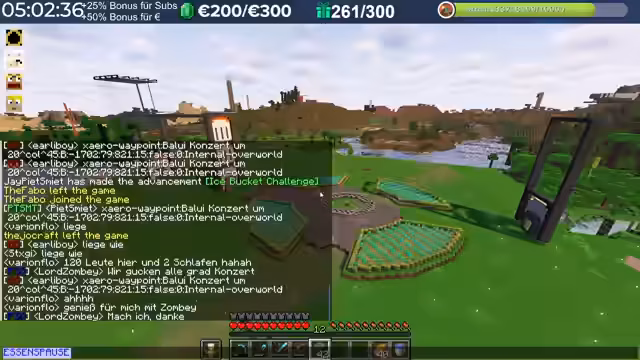 16:19:42Eli und Hanno benötigen ein Update bezüglich des aktuellen Stands. Öldi hat Dias in seiner Kiste im Haus. Es wird ein 'Shaquan' geholt, und Spark wird um eine 'Omnius-Potion' gebeten, wobei die Dauer der Wirkung (1er oder 2er) besprochen wird. Alex und Nico erhalten Dank für ihre Resubs. Es wird über ein bevorstehendes Event gesprochen, das wahrscheinlich als Zirkus mit den Anwesenden als Artisten geplant ist. Es wird erwähnt, dass es regelmäßig abendliche Events geben wird, sobald die erste Woche vorbei ist. Ein Konzert von Baloui hat bereits stattgefunden, und der 'Sinner' wird als Rapper und potenzieller Kandidat für die Nationalmannschaft erwähnt. Die erste Ressource, Eichenstämme (2500 Stück), ist vollständig gesammelt, und auch Dunkle Eichenstämme (4000 Stück) sind fertig. Es wird scherzhaft überlegt, diesen Erfolg mit einem 'männlichen Huhuhuhu' zu feiern, aber der Erfolg wird als zu klein dafür eingestuft. Ein Creeper-Vorfall wird erwähnt, und es wird über die Platzierung von 52 Obsidianblöcken diskutiert, deren Sicherheit ungewiss ist. Die Diskussion wechselt zu Anime-Themen, wobei 'Kim Possible' und 'Schiko' als Kindheits-Cartoon-Crushes genannt werden. Es wird über Dragon Ball Z und One Piece gesprochen, wobei der Sprecher Dragon Ball Z komplett durchgeschaut hat und die japanische Synchro bevorzugt. One Piece hat ihn in seiner Kindheit nicht so sehr gecatcht, da die Charaktere zu skurril waren. Es wird erwähnt, dass Dragon Ball Manga-Lesern empfohlen wird, da die Wendepunkte und Plot-Twists in Dragon Ball Z sehr gut sind.