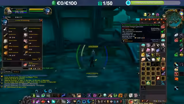 06:15:07Der Fokus liegt darauf, spätestens am Sonntag das Level 60 zu erreichen. Eine direkte Raid-Möglichkeit ist unwahrscheinlich, solange das Level nicht erreicht ist. Die Fertigkeit 'Heilen' wurde als einfaches Minispiel mit Balken beurteilt, das viel Mana erfordert. Der Plan ist, nach Erreichen des Levels 60 als Heiler in Raids agieren zu können, da dies als sicherere Position gilt.