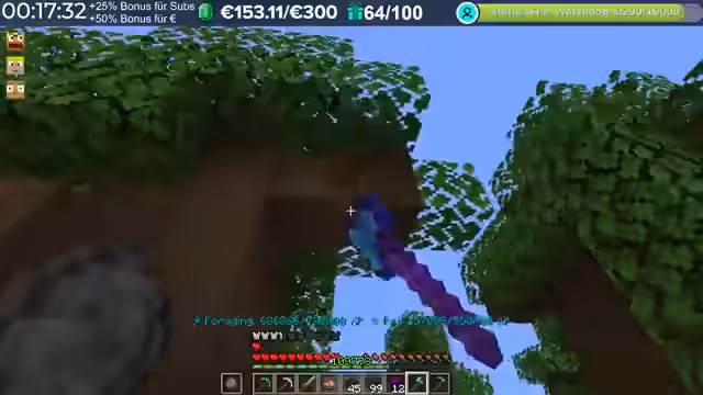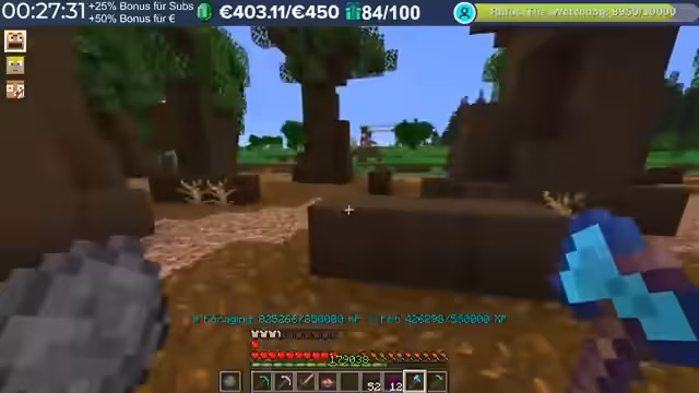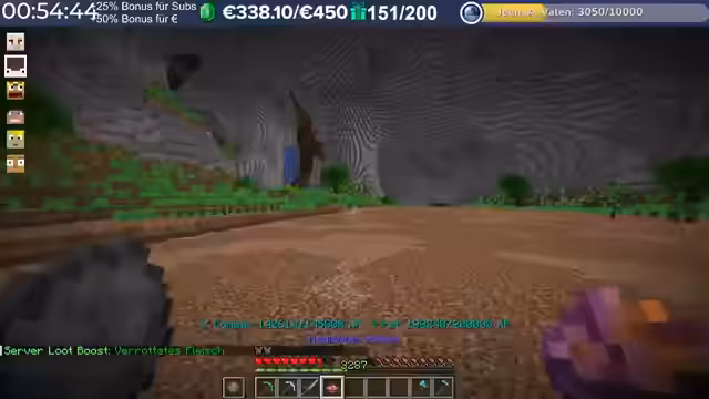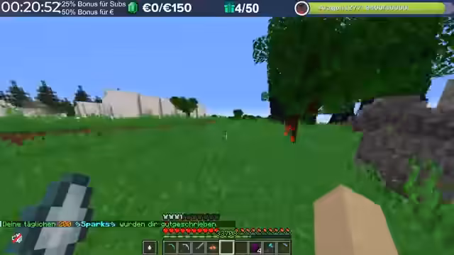 20:20:35Zu Beginn des Stream-Ausschnitts konzentriert sich der Spieler auf das Farmen von Ressourcen, insbesondere von Amethysten und Zombie-Fleisch. Er erwähnt, dass Mr. Moore über 4000 Sparks allein durch den Bau vom Wald erhalten hat und investiert nun in Server-Boosts. Es wird diskutiert, dass man etwa 13 Minuten Holz für einen Boss farmen muss und dass die Farming-zeiten je nach Dropchancen sehr lang sein könnten. Der Streamer bereitet sich vor, in einen Dungeon zu gehen, sammelt große Heiltränke und stellt fest, dass er Axolotl-Pad aktiviert hat, was zusätzliche Lootchancen bietet.