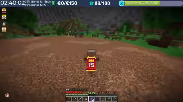 02:40:40Es gibt einen neuen Villager und Equipment wurde zusammengesammelt. Der Wald, der von den Teilnehmern gebaut wurde, wurde in eine Ressource umgewandelt, ähnlich einer Mine. Spieler können nun Dark Oak abbauen und ernten, um XP und Level zu erhalten. Es ist kein Anpflanzen oder Wachsenlassen von Setzlingen erforderlich, sondern ein automatisiertes System, bei dem man einfach ernten kann. Diese Ressource bringt sehr gute Level. Es wird überlegt, ob es im Mai zwei Server geben soll, abhängig von der Anzahl der Anmeldungen. Spieler können dann zwischen einem Server für schnelles Freischalten und einem für langsames Freischalten wählen. Die Dimensionen Sky, Stone oder Ocean stehen zur Auswahl, wobei Ocean am Anfang schwieriger ist. Es wird auch überlegt, ob Hasenblick als Belohnung für eine Questreihe geben soll, wo man einen Pattern bekommt, zum Beispiel im Dorf oder im Krankenhaus.