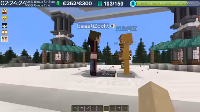17:51:24Basti wird in Skyblock eingeführt und erhält Starthilfe, einschließlich Basalt und einer Hacke zum Kartoffel ernten. Es wird erklärt, dass alle Custom-Items bis 99 stapelbar sind. Basti erhält Skillpunkte für das Abbauen von Ressourcen und erreicht schnell Level 5. Es wird erklärt, dass Nachzügler einen Boost erhalten, um schneller aufzuholen. Basti wird zu einer Base geführt, wo er verschiedene Ressourcen abbauen kann, darunter Basalt, Kartoffeln und Baumharz. Es wird ein Spawner gezeigt, der die Ressourcen umgreift. Basti erhält einen Boost an Leveln und XP, was zu einem schnellen Fortschritt führt. Es wird erwähnt, dass es im Casino Möglichkeiten zum Verzocken gibt, aber empfohlen wird, sich zuerst mit dem Spiel vertraut zu machen. Es wird angekündigt, dass bald ein neuer Villager mit einer neuen Ressource kommt.