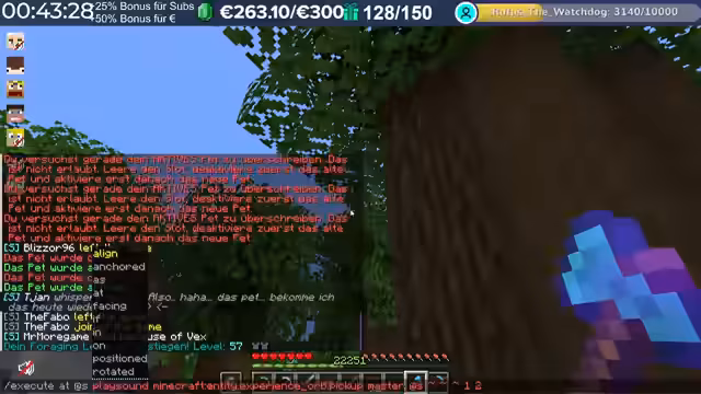 19:02:31Es wird über die Effizienz von Farmressourcen diskutiert, wobei Holz als unendliche Ressource im Vergleich zu Kartoffeln hervorgehoben wird. Die Möglichkeit einer Anpassung der Level-Belohnung von Holz wird angesprochen. Es wird der Plan diskutiert, den Autocompactor zu holen, um die Holzernte zu optimieren. Die Spieler äußern Interesse daran, den Evoker-Boss erneut anzugreifen. Es wird die Idee eines E3-Kommige-Projekts vorgestellt, bei dem Spieler Farmressourcen gestalten können, wobei auf die Moderation bei unangemessenen Bauten hingewiesen wird. Die erstellten Farmwelten sollen dauerhaft sein, sobald ein Dorfbewohner eintrifft, was eine Art Editor für die Spieler darstellt. Der Server läuft stabil mit geringer Millisekunden-Latenz, trotz der vielen Spieler. Es wird Holz abgebaut und Müll entsorgt, um die Umgebung sauber zu halten. Ein Problem mit einer Dark Oak Harvester-Axt wird behoben, das durch ein Upgrade verursacht wurde, welches die Modifizierung beeinträchtigte.
