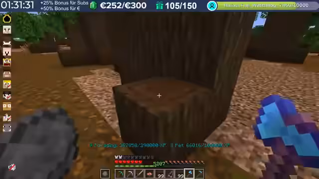 05:26:31Es wird über die Freude an den bevorstehenden Bosskämpfen gesprochen und die Hoffnung auf ein neues Pet geäußert. Ein neues Pet mit Mana-Regeneration, Magieschaden und Mana-Max wird vorgestellt. Es wird überlegt, ein zweites Pad zu kaufen, um die Bosskämpfe zu erleichtern. Es wird über den Erwerb einer Element-Axt und des Dark Oak Harvester Enchantments gesprochen, um Holz abzubauen. Es wird erwähnt, dass der Bosskampf mit dem Evoker relativ einfach ist und dass kleine Heiltränke ausreichen. Nach dem zweiten Bosskampf erhält man bereits das neue Pet, was große Freude auslöst. Es wird überlegt, die restlichen Boss-Keys zu verkaufen oder für weitere Pet-Farmen zu nutzen.