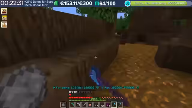 18:48:19Die Challenge besteht darin, das Illiger-Wort herauszufinden, um mit dem Waldanwesen zu interagieren. Es wird vermutet, dass sich das Wort in der City befindet, möglicherweise in der Bibliothek. Die Bibliothek befindet sich in Sparkys Schloss, und dort wurde ein Buch über die Sprache gefunden, das das Wort 'Party' enthält. Fuchsel wird versehentlich gespoilert, aber er findet das Buch schließlich auch in der Bibliothek. Nachdem das Wort beim Villager abgegeben wurde, öffnet sich ein Portal. Ein Schlüssel für den Boss kostet 99 komprimiertes Holz und 2000 Level. Es wird diskutiert, ob der Level-Gain jetzt höher ist und ob sich das Mining-Speed lohnt. Der Streamer überlegt, die Level pro Abbau zu erhöhen und beobachtet, wie viel XP pro Stunde erzielt wird. Bei Sachen, die zu teuer sind, muss der Magier in den Spore-Clans helfen. Mining-Speed-Bücher sind ausschließlich aus den Lootboxen erhältlich, was zu einem Problem führt, da nicht genügend im Umlauf sind. Der Streamer ändert die Farbe der Boxen temporär, um die Chance auf Mining-Speed-Bücher zu erhöhen.