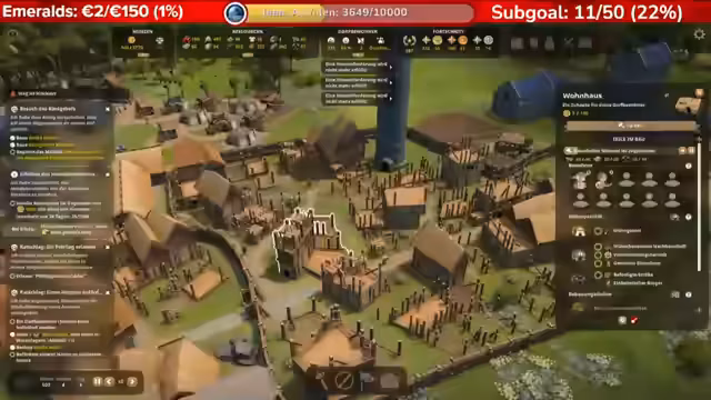 02:23:45Der Streamer baut ein Apiarium zur Honig- und Wachsproduktion und stößt auf ein massives Problem durch ein versehentliches Upgrade der Bevölkerungsstufe. Dies führt zu einem Teufelskreis: Häuser werden abgerissen, weil die Bedingungen nicht mehr erfüllt sind, und müssen neu gebaut werden, wobei bei jedem Bau Ressourcen verbraucht werden. Die Dorfbewohner laufen daher wie ein Flummi ständig zwischen den Häusern hin und her und verursachen eine reine Vollkatastrophe in der Logistik.