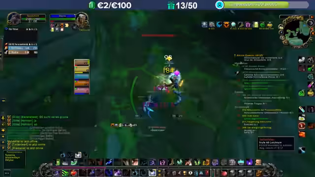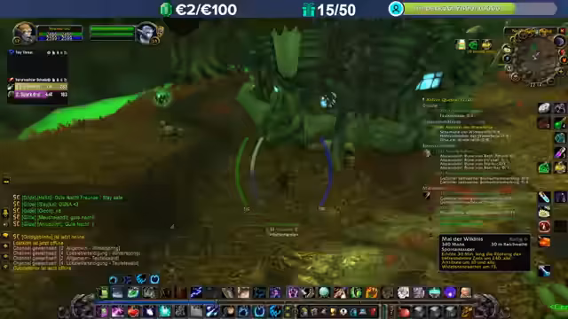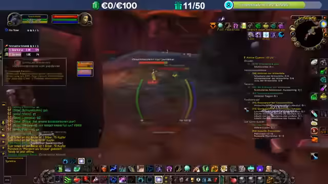 00:11:43Die hauptsächliche Aktivität besteht im Grinden im Teufelswald, um sowohl Ruf zu farmen als auch die benötigten Seelensplitter zu sammeln. Das Ziel ist es, diese Splitter gegen Salbe einzutauschen, um Pflanzen zu heilen und den passenden Buff zu erhalten. Die volle Spielerdichte durch nur zwei Server-Layer erschwert die Farm-Situation erheblich, da alle auf denselben Mobs herumhacken, was das Grinden langsam macht. Man diskutiert alternative Gebiete wie Un'Goro-Krater.