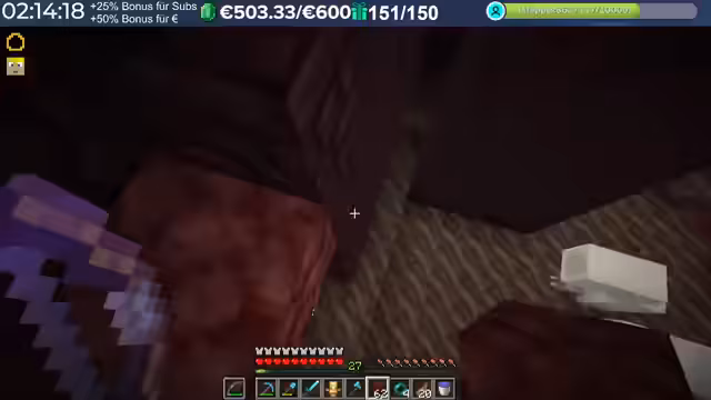 17:48:50In Craft Attack herrscht klare Arbeitsteilung: Willi sammelt Sand (60.000 Einheiten), Nic baut TNT, Hanno verwaltet Wolle und Essen, Reapers repariert Werkzeuge. Das Projekt verfügt bereits über riesige Ressourcenmengen, darunter 50.000 Glas und 140.000 schwarze Wolle für das Infinity Castle. Geplante Farmen sind Gold- und Froglight-Farmen. Das Shopping District wird als Handelsplatz für Überschüsse genutzt. Der Streamer lobt die positive Stimmung und den reibungslosen Ablauf trotz der Größe des Projekts und verweist auf die Tagesschau-Erwähnung als Erfolgsindikator.