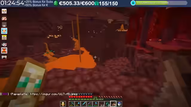 04:29:59Nach der Deeskalation des Konflikts startet die große Nether-Expedition für alle Teilnehmer. Das Ziel ist es, Ressourcen wie Ancient Debris, Quarz, Blaze-Rods und Happy Ghasts zu farmen. Die Erkundung wird koordiniert, und es werden strategische Plätze wie Basalt Deltas für die Froglight-Farm und Bastions für den Loot identifiziert. Die Stimmung ist motiviert, und die Teilnehmer teilen sich auf, um möglichst effektiv die benötigten Materialien für ihre Bauvorhaben zu sichern.