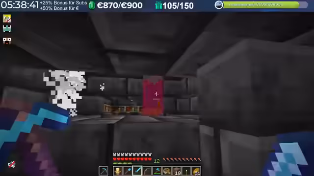 03:31:16Der Streamer sammelt Ressourcen wie Kies und Diamanten für Werkzeugreparaturen und überlegt, Netherite-Rüstung zu craften. Er diskutiert die Regeln für Cam-Accounts im Nether und plant, sich mit Netherite für mögliche Kämpfe auszustatten. In diesem Kontext lernt er selbst Netherite-Crafting: Smithing-Table, Templates aus Bastionen, Ancient Debris und Gold sind nötig.