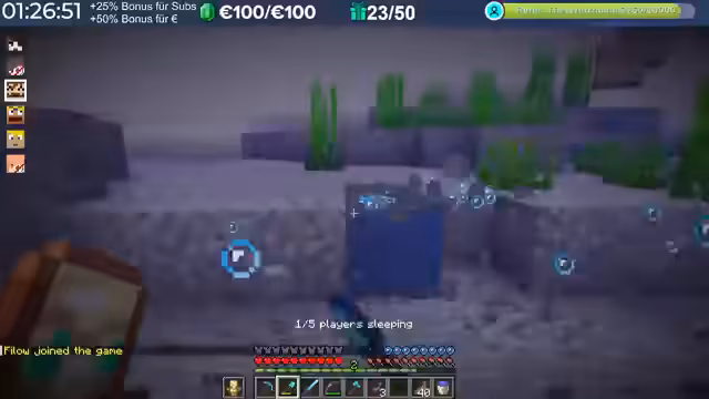 19:43:45Es werden technische Minecraft-Details geklärt, darunter die Spawn-Bedingungen für Tintenfische und die benötigte Mindestentfernung zu anderen Mobs. Ein Creeper verursacht kurzzeitig Alarm in der Basis. Der Streamer berichtet von fehlendem Schlaf und dem Fehlen eines Bettes, was ihn zwang, einen Respawn-Punkt zu setzen, da er in einer Trial-Falle steckte. Der Fortschritt bei der Terraforming wird angesprochen, mit dem Ziel, kurzzeitig die Schlafzeit der Zuschauer auszunutzen, um fehlende Zombies zu spawnen.