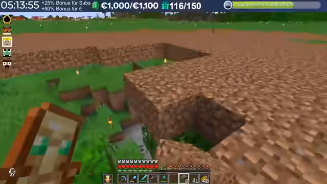 02:03:37Die Aktivitäten verlagern sich auf die Erkundung der Spielwelt und das Sammeln von Ressourcen. Der Streamer sucht aktiv nach Materialien wie Tuff und Kies für seine Bauprojekte und erwähnt dabei Koordinaten, um andere Spieler wie Muri in der Nähe zu lokalisieren. Im Zuge der Suche wird eine Ancient City in der Nähe der Koordinaten Minus 1000 entdeckt. Die Diskussionen drehen sich auch um das gemeinsame Farmen von Gegenständen und die Planung von Farmprojekten, wie beispielsweise eine Farm für Froschlicht. Dabei werden auch technische Hürden bei der Funktionsweise von Farmen angesprochen, wie verstopfte Spawner durch Babyzombies.