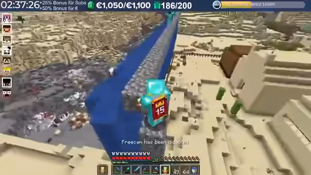 03:01:20Der Streamer bespricht Änderungen an der Spielmechanik, insbesondere bei Speeren. Das Enchantment 'Lunch' wird überarbeitet: Die Haltbarkeit und der Hungerverbrauch sind reduziert, was das Überleben erleichtert. Speere sind jetzt besser für Jump 'n' Runs geeignet. Zusätzlich werden Eigenschaften des Zombie-Camels detailliert erklärt, wie Fütterung mit Hasenpfoten zur Heilung, aber keine Zuchtbarkeit. Andere Updates umfassen, dass Pferde und Kamele nicht mehr im Wasser einsinken und Fledermäuse langsamer spawnen.