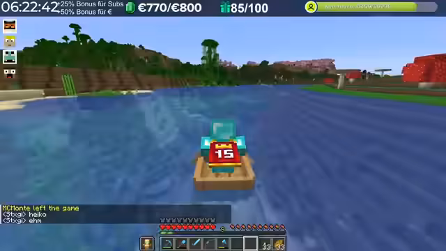 02:22:28Ein unerwartetes technisches Problem, eine fehlerhafte Todesmeldung im Chat, wird als Startpunkt für ein Gespräch über die allgemeine Server-Kultur genutzt. Der Streamer stellt fest, dass er im Gegensatz zu anderen Spielern noch nie von Pranks wie dem Bau von Booten an seiner Basis betroffen war, was er als rätselhaft bezeichnet. Er vermutet, dass bestimmte Spieler gezielt ignoriert werden und kontert damit der Idee, er sei unbeliebt. Stattdessen spinnt er eine Geschichte um ein geplantes 'Silent Lobby'-Event, bei dem er als einer mit der 'Macht' die Kontrolle über die Teilnehmer hätte. Dies zeigt eine humorvolle Reaktion auf die Dynamik der Community.