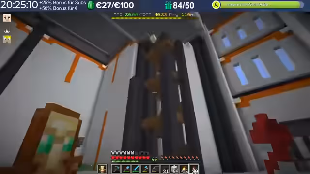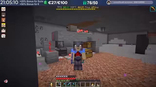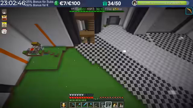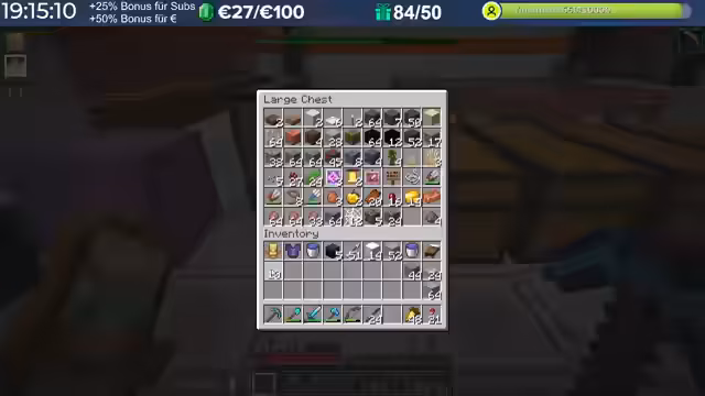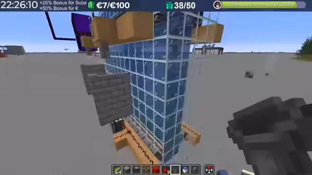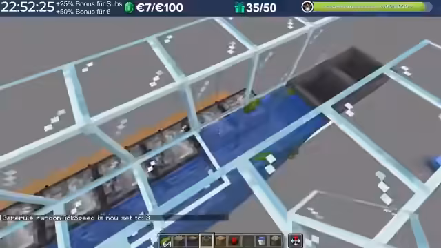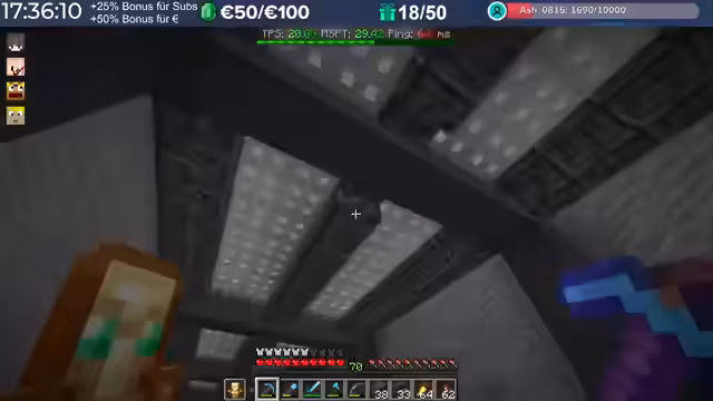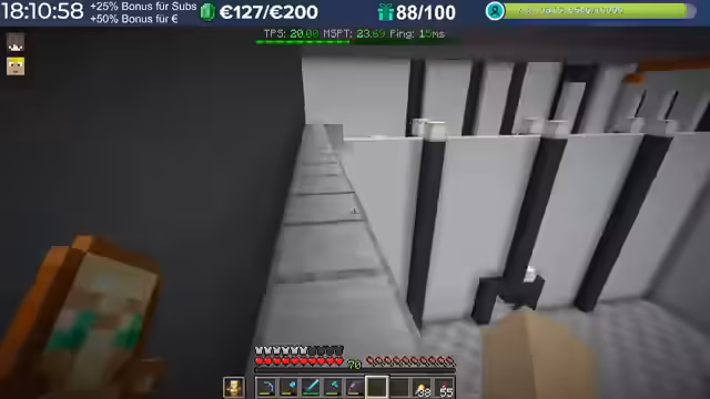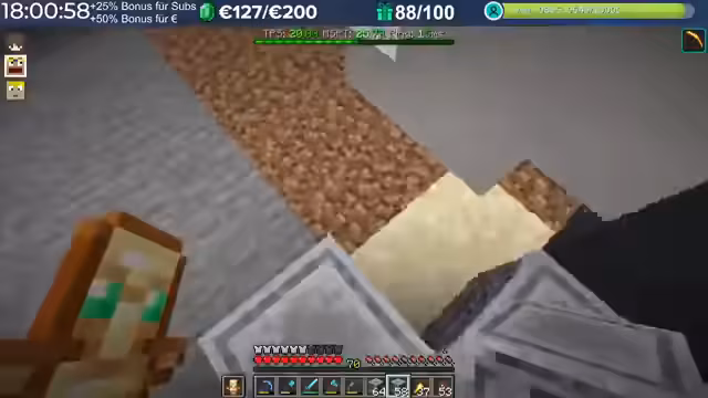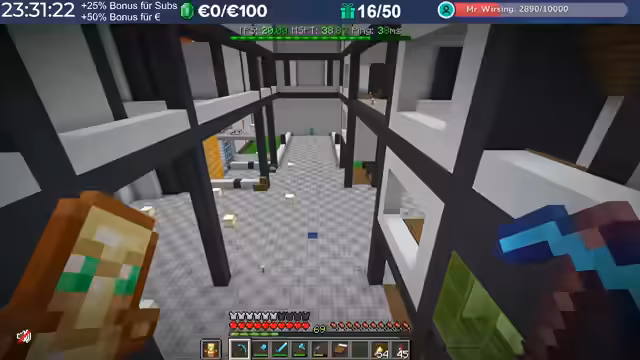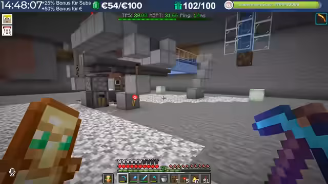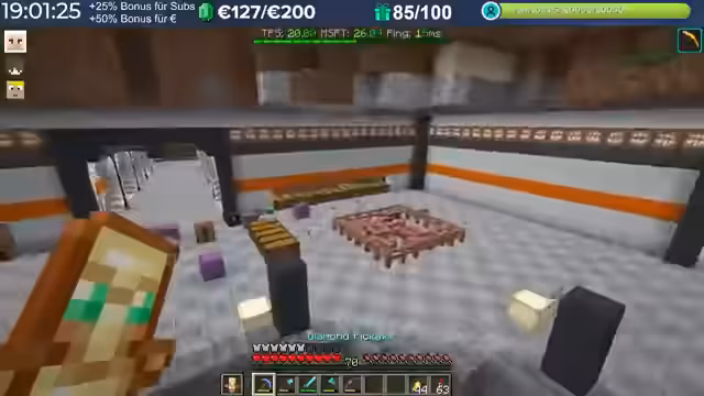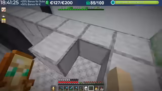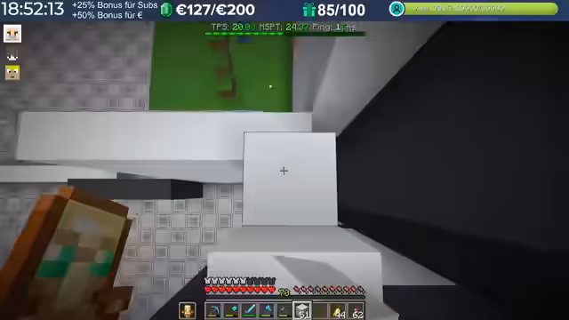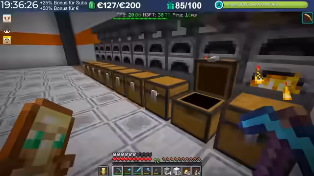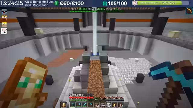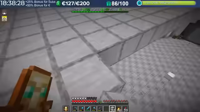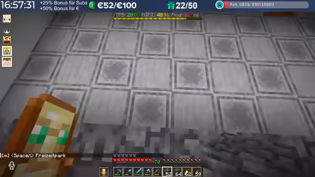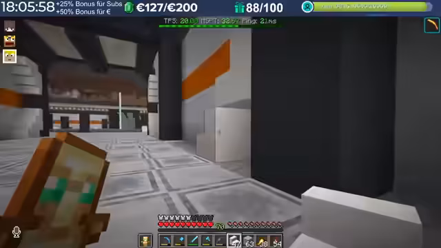 19:00:31Der Streamer gibt einen detaillierten Einblick in den Fortschritt seines Basebaus in Minecraft Craft Attack. Er berichtet, wie er durch das Abbauen und Einräumen von Stein zahlreiche Lodestones gesammelt hat, die für weitere Bauprojekte genutzt werden. Die Innenräume der Basis sind weitgehend ausgebaut, obwohl noch Details wie Glasgeländer fehlen. Ein besonderes Augenmerk liegt auf der Implementierung einer Bambusproduktion, die bewusst ineffizient gestaltet wurde, um eine optisch ansprechende Ansicht von außen zu ermöglichen. Der Bambus wird automatisch zu Sticks verarbeitet und in großen Mengen gelagert, um mit Fletchern und Farmern gehandelt zu werden. Ein weiteres Highlight ist ein ungewöhnlicher Item-Aufzug, der ohne Wasser funktioniert und Items durch Glasblöcke nach oben 'glitcht', was als platzsparend und effizient beschrieben wird. Der Streamer zeigt auch ein neues, kompakteres Dispense-System. Er plant, die Fabrikhalle außen mit einem Cosmetics-Dach zu versehen und Villager für verschiedene Trades zu nutzen, darunter Fletcher für Sticks und Farmer für goldene Karotten.