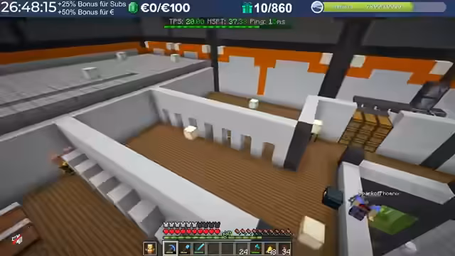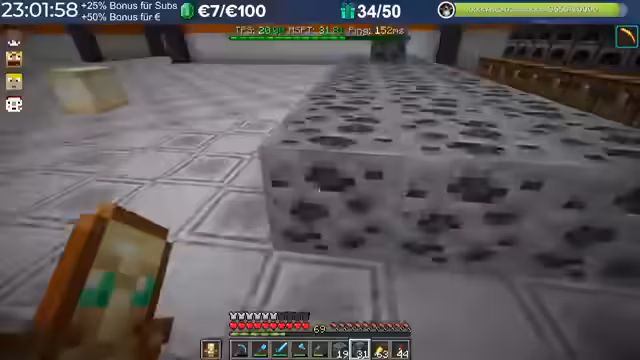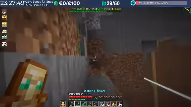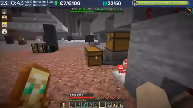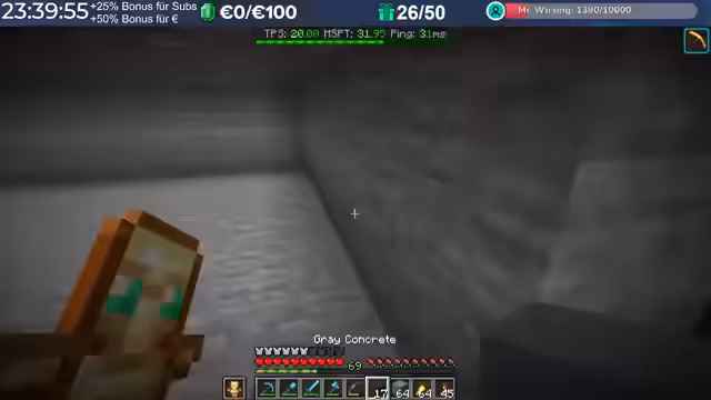23:27:43Ein Rätsel um einen Scam im Eisen-Shop wurde gelöst, bei dem drei Diamantblöcke entwendet wurden. Es stellte sich heraus, dass die Person, die dafür verantwortlich war, lediglich verpeilt war und die Regeln falsch gelesen hatte. Es wird über neue Feature-Requests im Discord diskutiert, darunter die Idee einer interaktiven Karte auf einer Website, die Strukturen scannen könnte. Obwohl dies als cool empfunden wird, wird auch die Frage nach dem Mehrwert im Verhältnis zum Aufwand gestellt. Der Streamer ist derzeit viel damit beschäftigt, Bereiche auszuheben, ohne genau zu wissen, was dort entstehen soll, farmt dabei aber passiv Andesit.