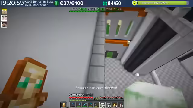 06:57:51Es wird über die 'Keep Inventory'-Einstellung in Minecraft gesprochen, die versehentlich aktiviert war und nun deaktiviert werden soll. Die Person farmt Quarz für Bauprojekte, insbesondere für einen Keller, der 'komplett weiß und steril' sein soll. Es wird erwähnt, dass Inventarplatz ein Problem darstellt und Gegenstände wie Cookies und Äpfel weggeworfen werden könnten, da sie leicht bei Villagern nachgekauft werden können. Es wird auch über die Nutzung von Freecam gesprochen, wobei die Person den Seed der Welt kennt, aber die Funktion nicht zu ihrem Vorteil nutzt. Zudem wird die Effizienz des Abbaus von Andesit diskutiert, da dies passiv beim Freigraben von Flächen gesammelt wird und an anderer Stelle benötigt wird.
