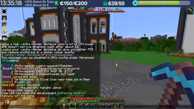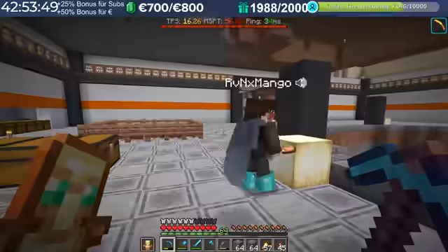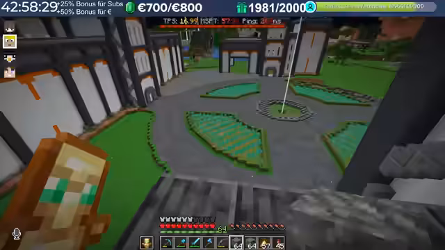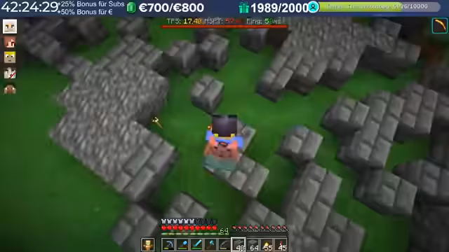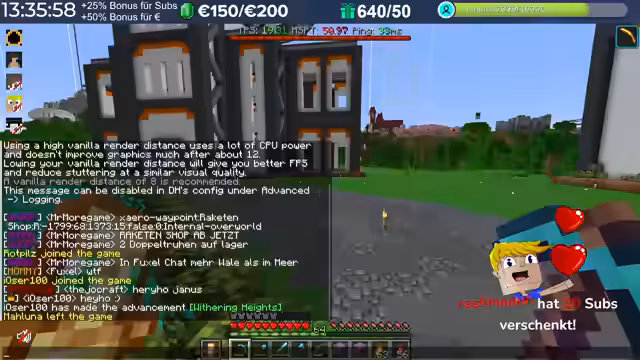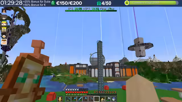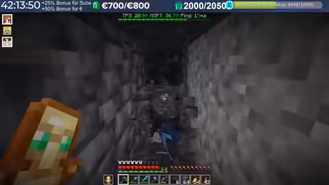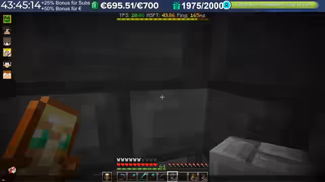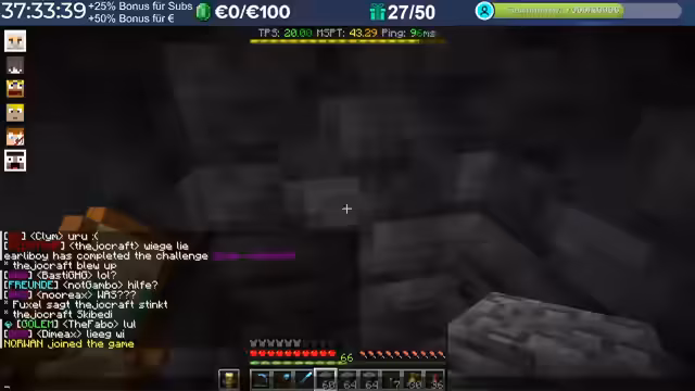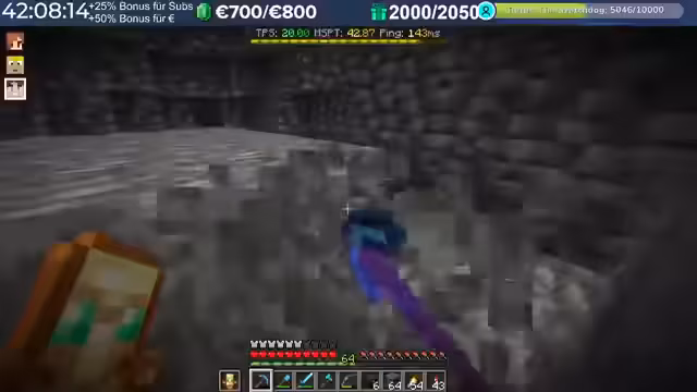20:02:15Im Verlauf des Streams treten erhebliche Performance-Probleme auf. Spieler berichten von hohem Ping, der teilweise auf 3000 steigt, was auf Routing-Probleme mit dem Provider zurückzuführen ist. Diese Verzögerungen machen das Spielen, insbesondere das Fliegen mit Raketen, zu einer Herausforderung. Die Server-Last nimmt durch viele Basen, Farmen und Entities nach einigen Wochen zu, was die TPS auf 15 bis 13 sinken lässt. Die Organisatoren erkennen an, dass die aktuelle Software an ihre Grenzen stößt und konfigurative Anpassungen nur begrenzt Abhilfe schaffen können.