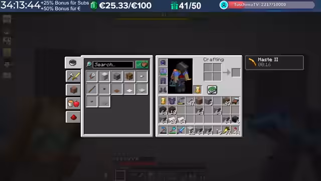 02:57:25Der Stream konzentriert sich auf die Bewältigung technischer Probleme im Spiel, insbesondere bei der Automatisierung des Herstellungsprozesses für Bambusplanks. Gleichzeitig werden Gameplay-Strategien besprochen, wie die effektive Nutzung von Spawns in der Trial Chamber und die Verzauberung von Waffen wie dem Mace, um im Spiel voranzukommen.