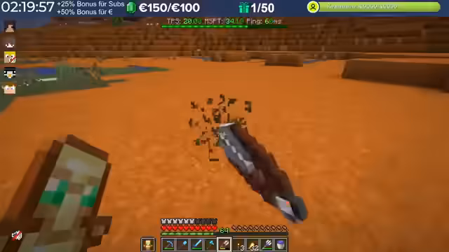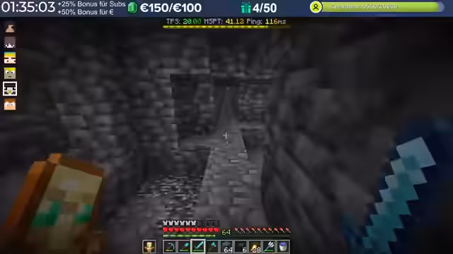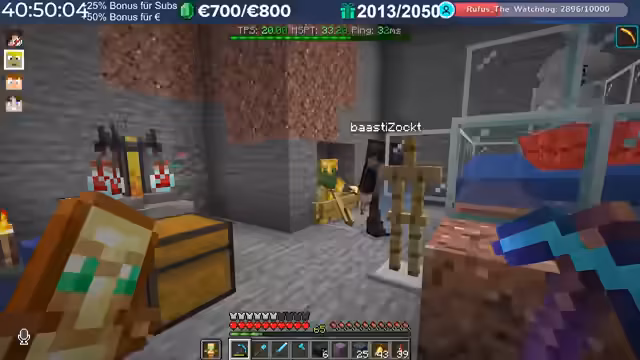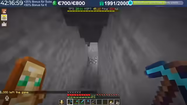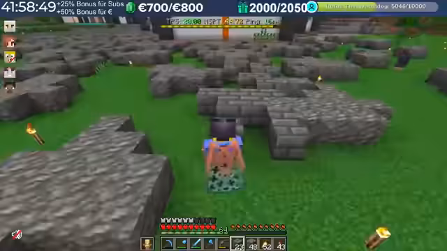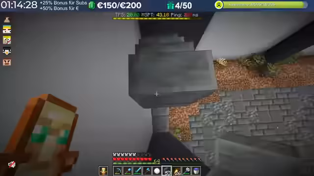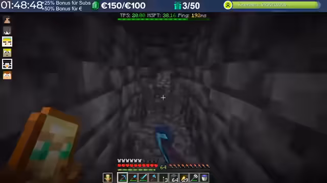 08:05:13Ein Hauptthema war die Diamanten-Farm-Challenge, bei der die Spieler um die meisten Diamanten konkurrierten. Der Streamer war kurzzeitig an der Spitze, gab dann aber einige Diamanten an andere Spieler weiter. Es wurden Strategien für den Diamanten-Abbau besprochen, und die Zuschauer wurden aufgerufen, ebenfalls zu farmen.