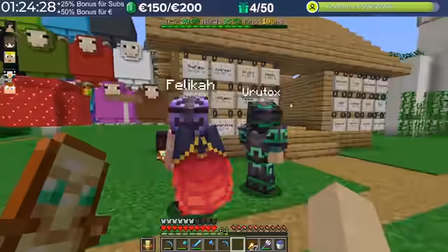 18:07:46Im Spiel wurde Handel mit Raketen betrieben. Gambo startete einen Schwarzmarkt für Raketen und verkaufte diese für einen Diamant pro Stack. Ein Chat-User schlug vor, einen richtigen Shop im Shopping District zu erstellen. Es wurde auch eine humorvolle Diskussion über die Gründung einer Socken-Firma namens „Uru Socks“ geführt, inklusive Späße über Marketing und Versand.